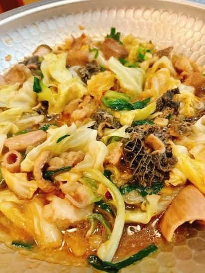 ホルモンと野菜とタレだけで煮込むシンプルで濃厚な美味しいホルモン鍋です。